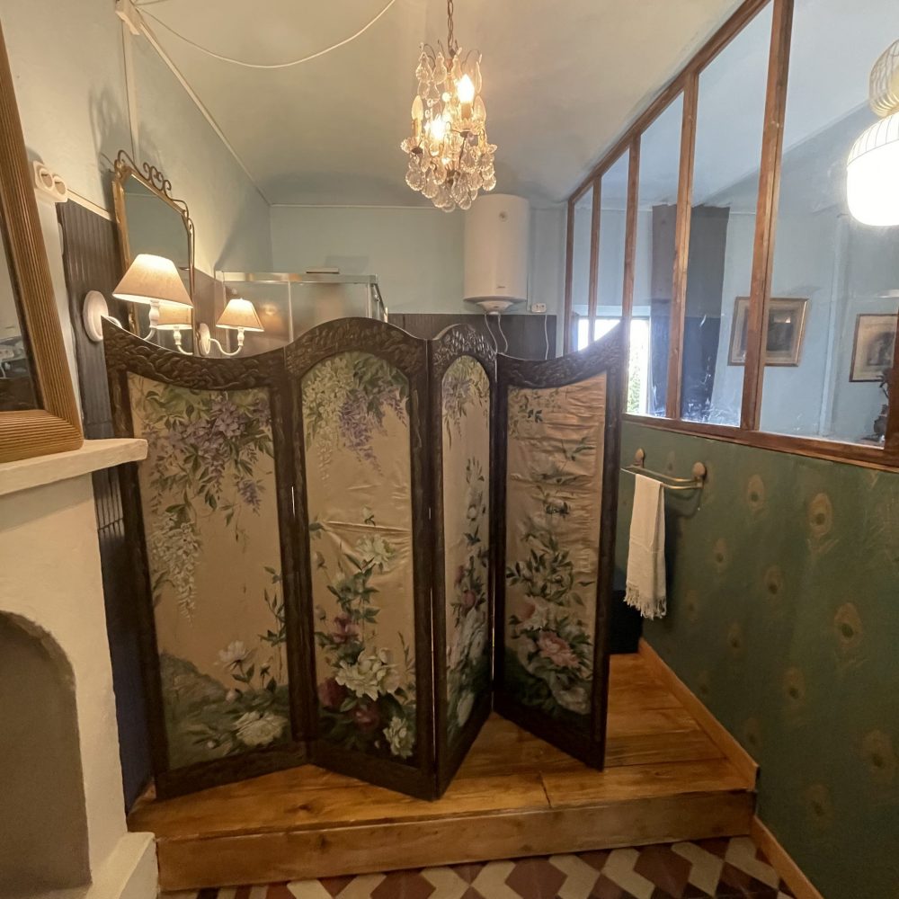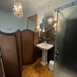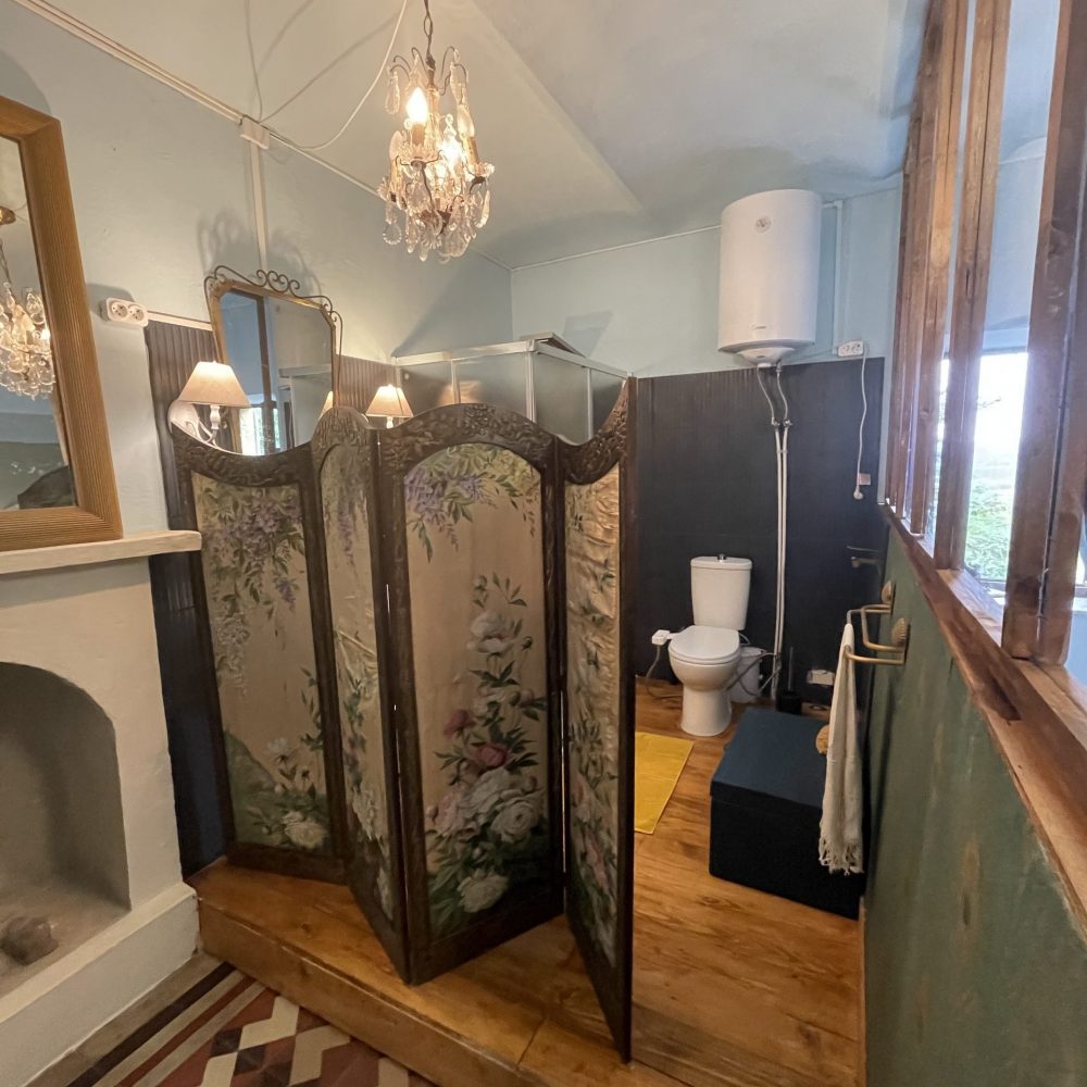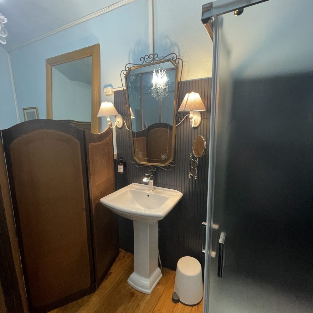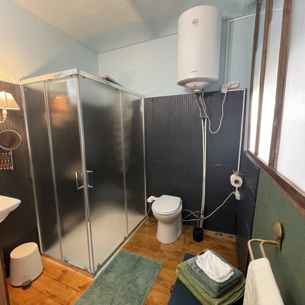 Salle de bains dans la chambre avec lavabo, douche, wc avec système de bidet