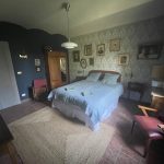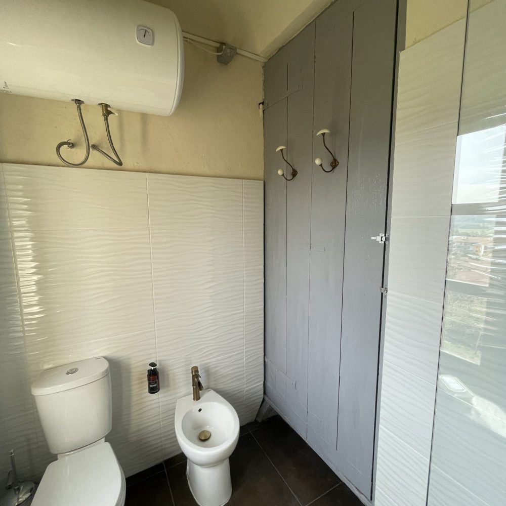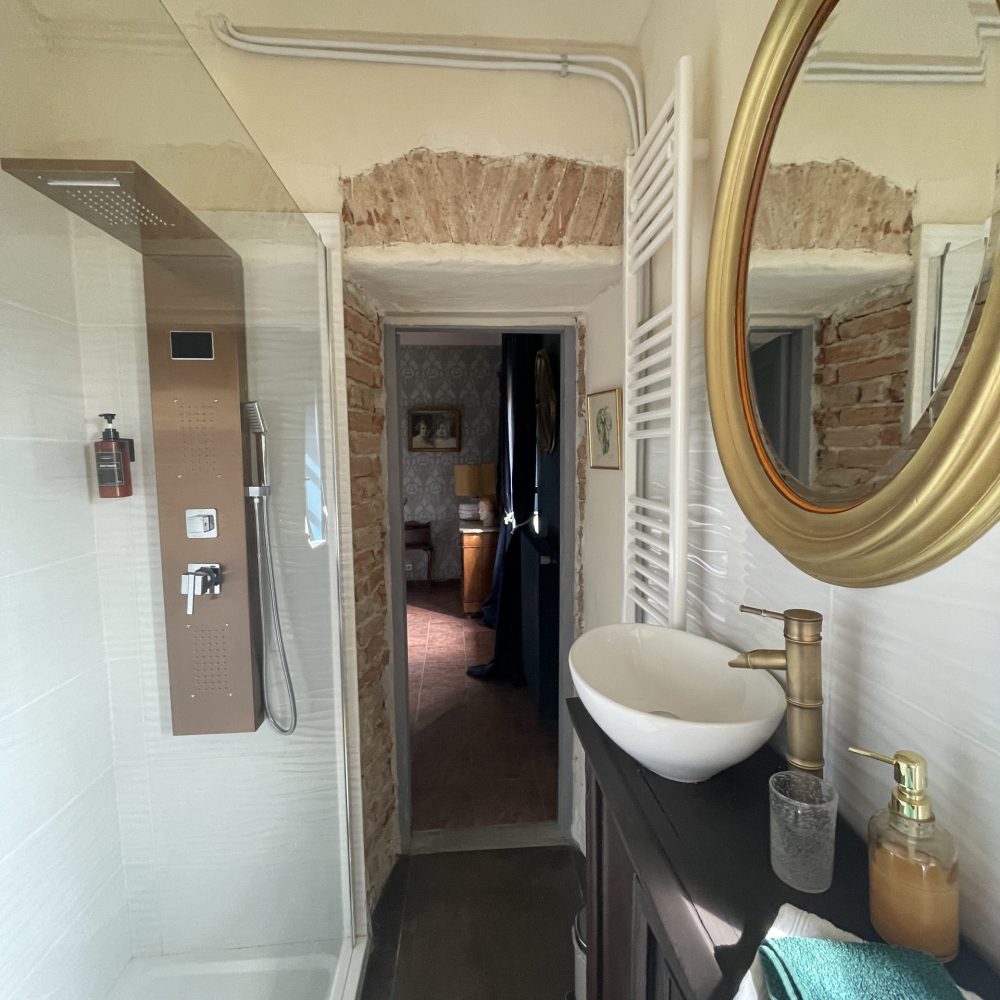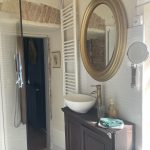 Salle de bains dans la chambre avec lavabo, douche, wc et bidet