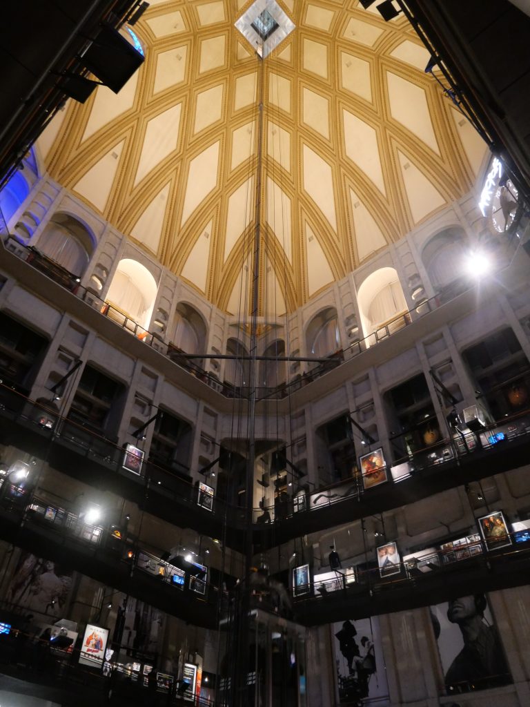 Aujourd’hui, elle abrite le Musée national du cinéma, l’un des plus importants d’Europe, qui transforme l’intérieur du monument en un espace spectaculaire, vertical et immersif.
