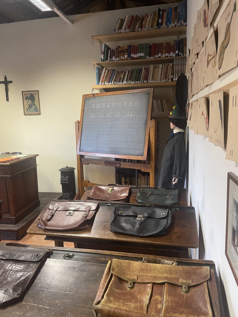 À l’étage supérieur, le musée offre un regard plus large sur la vie culturelle locale. Un atelier d’école des années 1930 est reconstitué avec mobilier et objets d’époque.