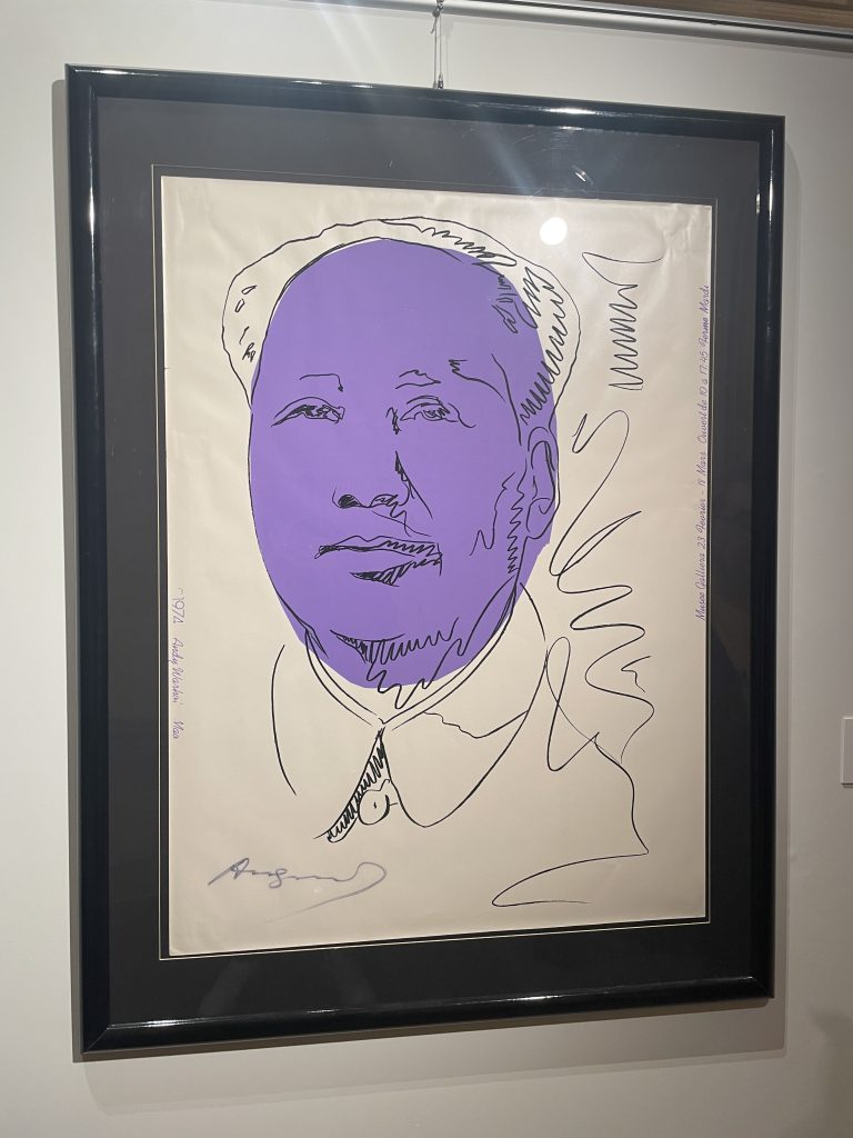 • Andy Warhol — avec des icônes telles que Mao, les Marilyn, les soupes Campbell’s mais aussi Marella Agnelli (1973), une œuvre unique.