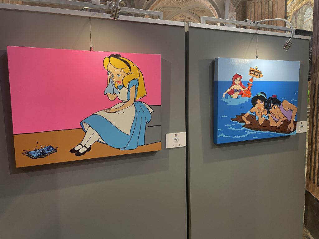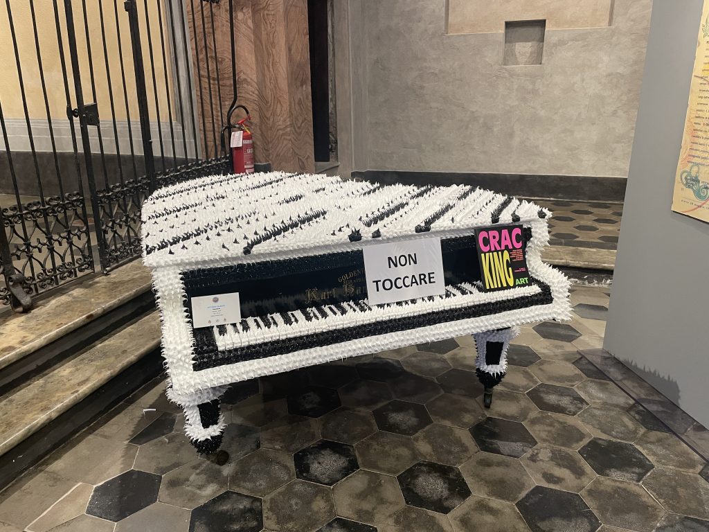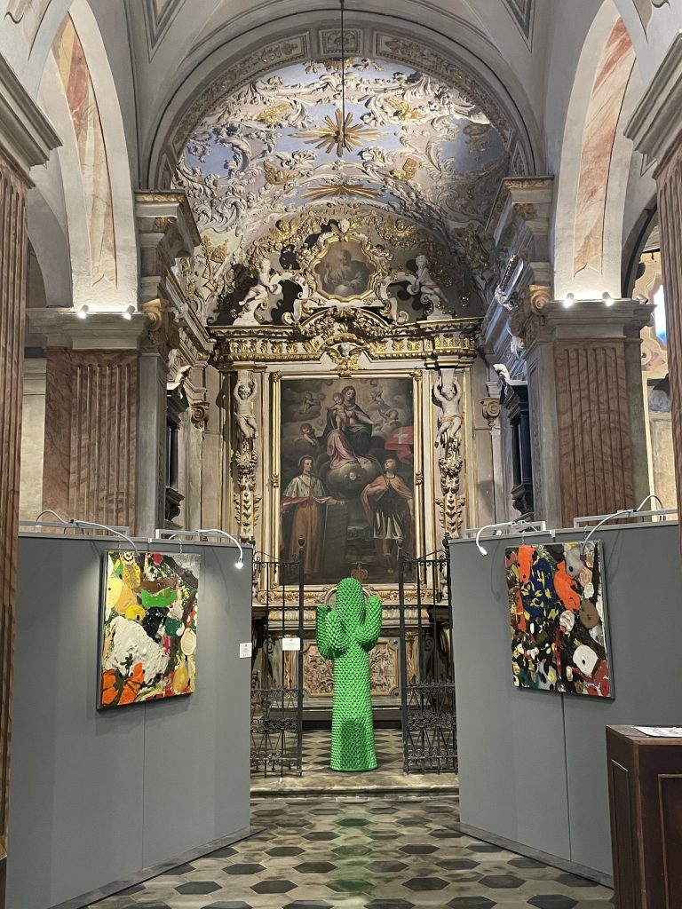 La magie de SBAM! réside aussi dans son parcours réparti dans plusieurs lieux patrimoniaux de Cherasco. Palazzo Salmatoris, bâtiment historique emblématique de la ville, devient une scène où l’histoire classique se confronte à l’énergie colorée et provocante de la Pop Art. La Chiesa di San Gregorio, récemment restaurée, accueille une sélection d’œuvres qui mettent en valeur l’héritage visuel du mouvement tout en dialoguant avec l’espace sacré.