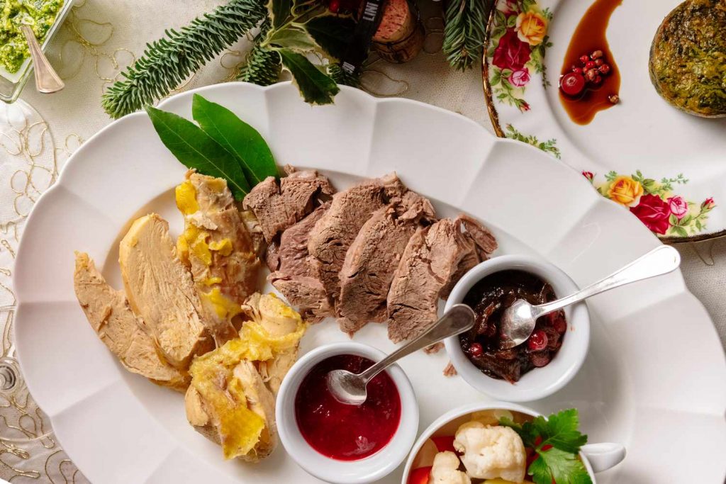 Assortiment de viandes bouillies servi avec plusieurs sauces (salsa verde, moutarde, bagnet ross). Plat traditionnel des grandes occasions, reflet d’une cuisine généreuse et structurée.