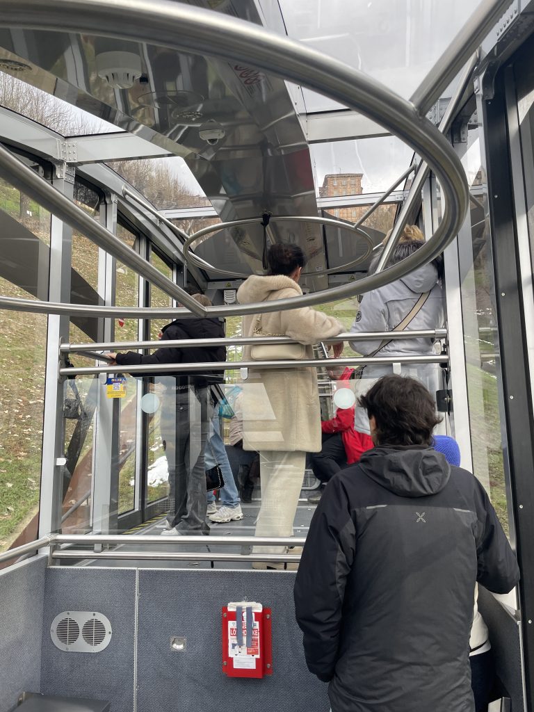 Il relie le quartier inférieur de Breo à celui plus ancien et panoramique de Piazza, offrant une liaison pratique entre les deux parties de la ville tout en offrant une vue imprenable sur les toits, les collines et les Alpes environnantes.